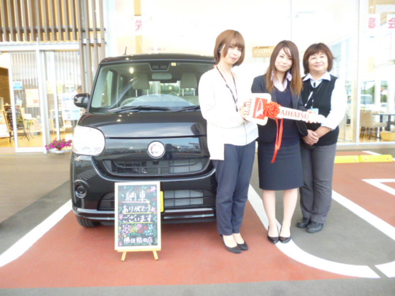 -お客様の声-大切に使います。この度はご納車させていただきありがとうございました。今後も末永いお付き合いをよろしくお願いいたします。キャンバスに負けないかわいい笑顔ですね☆担当:谷口