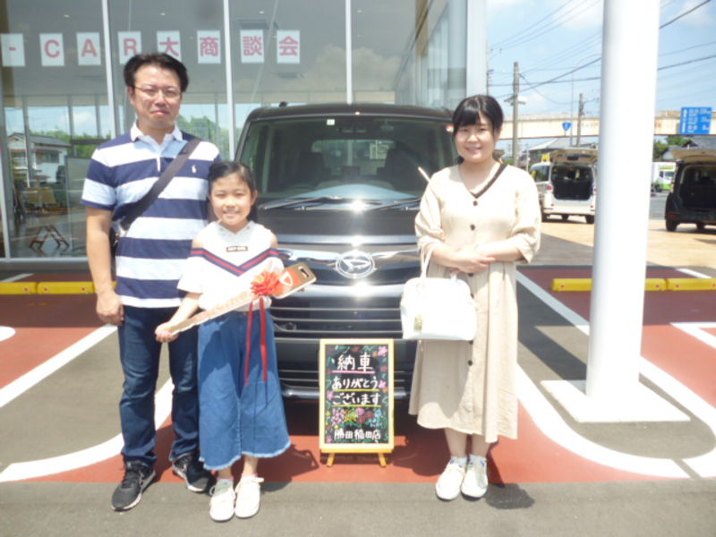 -お客様の声-親切な対応ありがとうございます。今後も末永く宜しくお願いします。この度はご納車させていただきありがとうございました。トールで家族の思い出をたくさん作ってください!こちらこそ末永いお付き合いをよろしくお願いいたします😊担当:小川