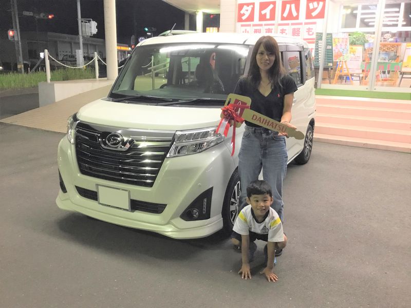 お客様の声”すてきな店員さんが担当になってくれました。大切に乗ります”この度はご納車させていただきまして誠にありがとうございました。トールでステキな思い出をたくさん作ってください。担当:曽根