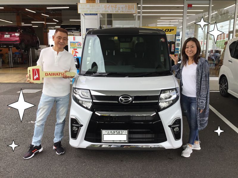 大変お待たせ致しました!新型タントカスタムです(≧▽≦)たくさんのメッキとブラックのルーフで、高級感MAXな一台となりました。追従機能や駐車支援機能も付き、皆様のドライブのサポートになれば嬉しいです(*^_^*)DNGA第一弾のタント、ぜひぜひ楽しんでください!担当:白石