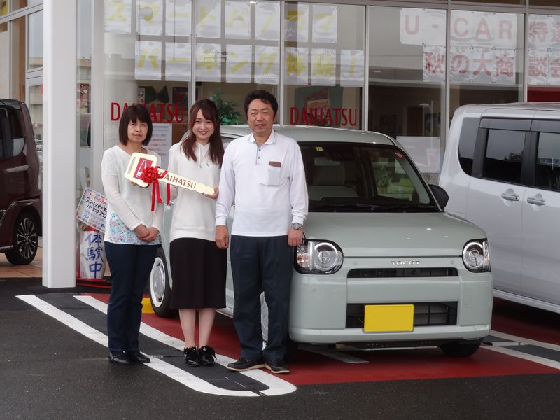ーお客様の声ー初のマイカー!かわいい車をゲットして嬉しいです。安全運転頑張ります!谷口さんがとっても親切でした😊ありがとうございました!この度はご納車させていただきありがとうございました。今後も末永いお付き合いをよろしくお願いいたします。担当:谷口