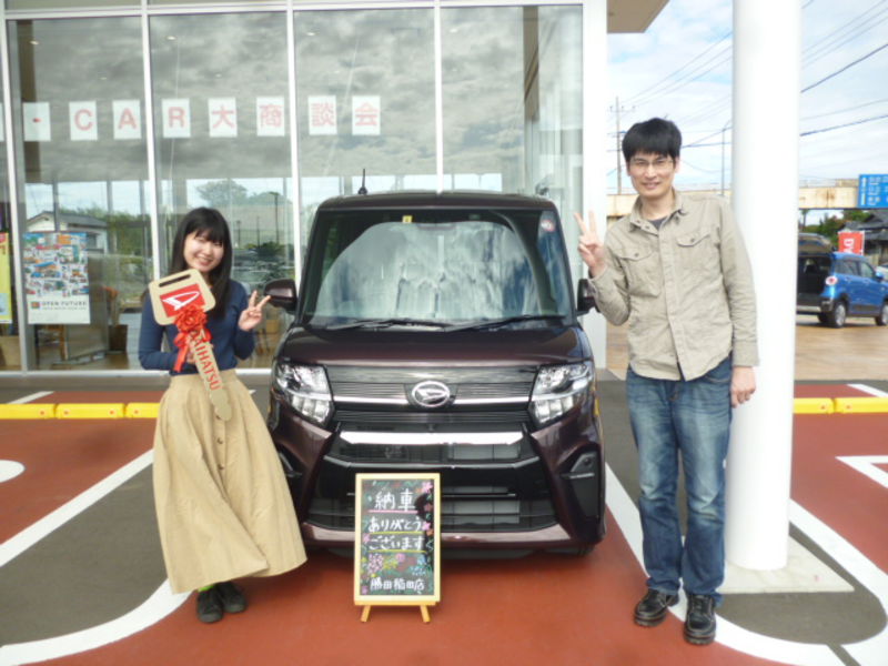 -お客様の声-明るく丁寧に対応していただきました。こちらの希望を聞いて対応していただきました。この度はご納車させていただきありがとうございました!タントの新しい機能たくさん試してみてください😊今後も末永いお付き合いをよろしくお願いいたします!!担当:小川