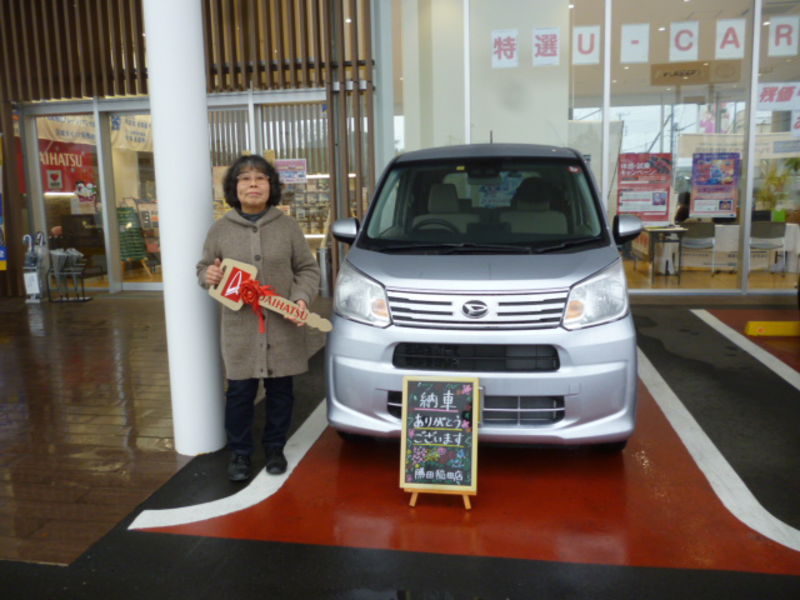 -お客様の声-大切に乗りたいです。引き続きムーヴをお選びいただきありがとうございます!安全運転で色々なところへお出かけ楽しんでください♪今後も変わらず末永いお付き合いをよろしくお願いいたします。担当 山本