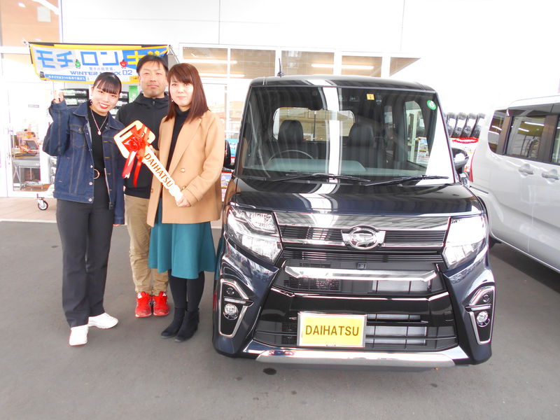 ~お客様の声~営業の石塚さんにお世話になり、素敵なタントを購入することができました。これから、大切に家族と乗っていきたいと思います。ありがとうございました!!担当:石塚ご納車させて頂き誠にありがとうございました。本当に喜んでいただけてとても嬉しいです。これからも末永いお付き合いを宜しくお願い致します。