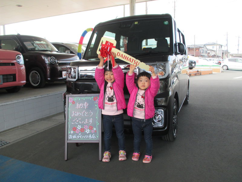 <お客様の声>WAKEうれしいな♡ドライブたのしみぃ~!!!大変お待たせいたしました!ペアルックで可愛いお子様♡ウェイクで楽しい思い出いっぱい作って下さい!担当黒井
