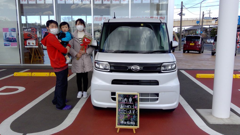 -お客様の声-ダイハツ タント乗るの楽しみです。この度はご納車させていただきありがとうございました。今後も末永いお付き合いをよろしくお願い致します。担当:谷口