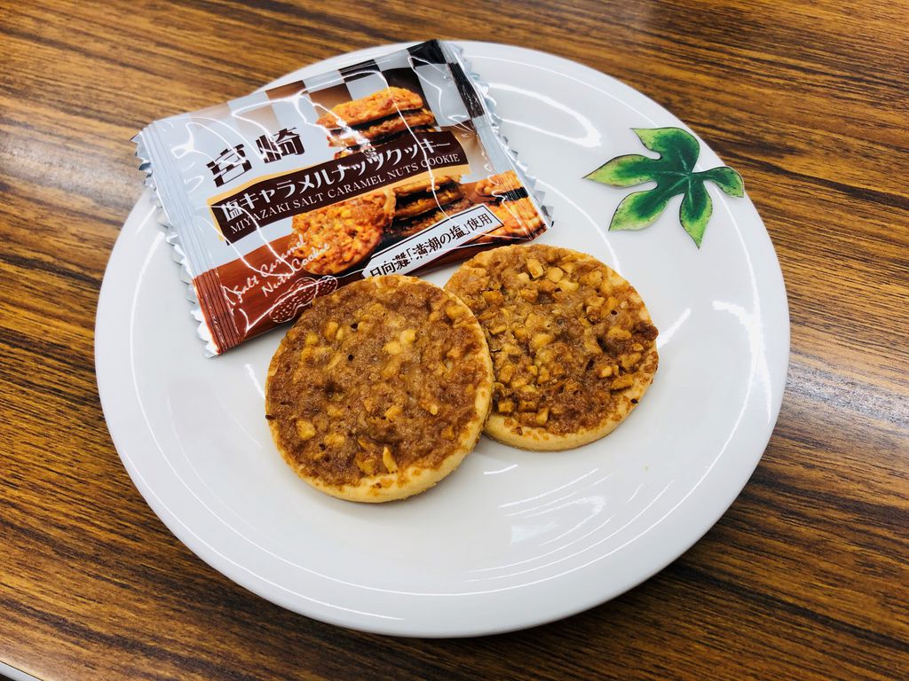 こんにちは(*´ω`*)皆さんスイーツはお好きでしょうか?今回はダイハツのオリジナルスイーツをご紹介いたします♪3月は「宮崎塩キャラメルナッツクッキー」です✧˖°日向灘の満潮の塩を使用した、塩風味のキャラメルナッツクッキー!スイーツ大好きなスタッフも唸る美味しさ(`・ω・´)❤ご来店の際にはぜひ食べてみてください!!