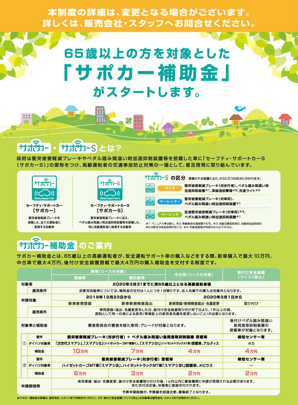 「サポカー補助金」とは、65歳以上の方が安全運転サポート車の購入などをする時に、