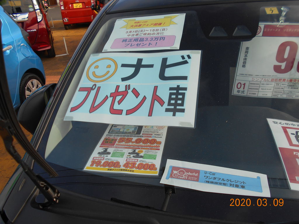 中古車決算フェア 3月15日まで開催中!!今なら、成約記念品やオプション33000円分プレゼントなど大変お得です。