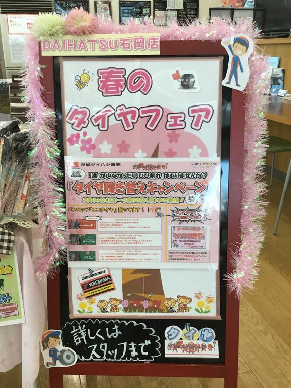 そろそろタイヤ交換をご希望されてる方、ダイハツ車だけではなく併有車のタイヤ交換も承っておりますので、ぜひ石岡店にご来店お待ちしております🚙