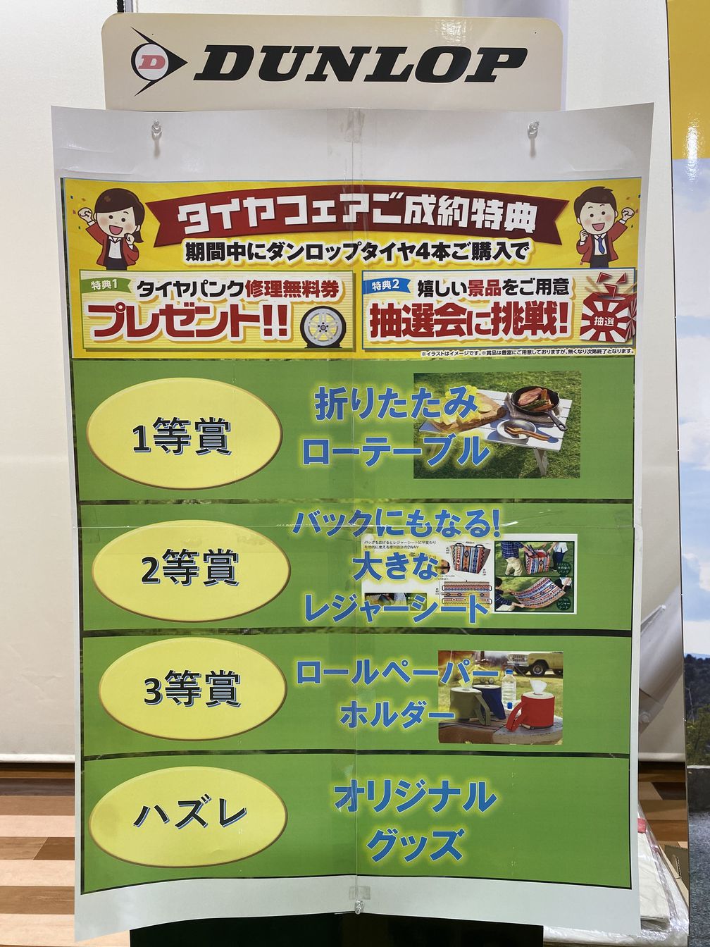 タイヤフェア中にタイヤ4本ご購入のお客様には