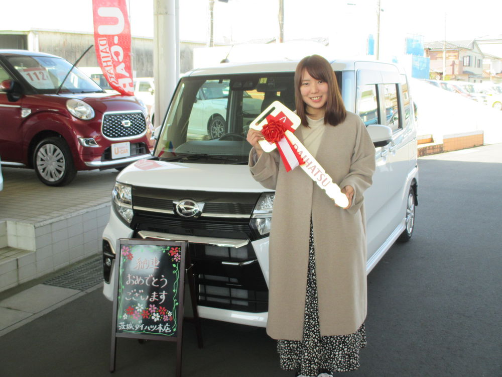 <お客様の声>初めての新車!乗るのが楽しみです!!ぜひタントと共に楽しい思い出を作って下さい。今後とも末永いお付き合いを宜しくお願いします。担当加藤