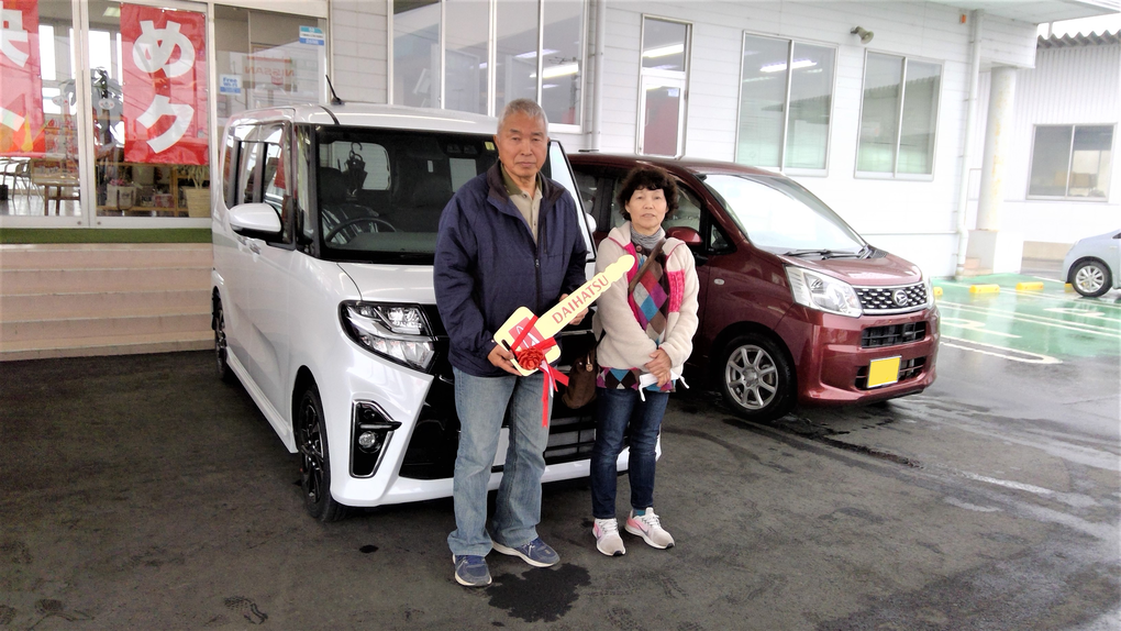 ご納車させていただきありがとうございました!タントで素敵な思い出をたくさんお作りください。これからも末永いお付き合いをよろしくお願い致します。担当:大塚
