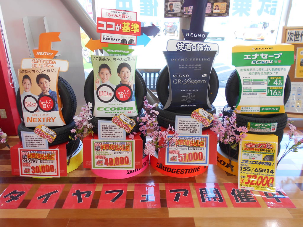こんにちは!茨城ダイハツ水戸内原店です♪桜が咲き始め暖かい気候になってきましたね✿✿✿そろそろスタッドレスタイヤからノーマルタイヤへの履き替えを検討中の方も多いのではないでしょうか?水戸内原店では現在 3/30(月) までの期間限定でタイヤフェアを開催しております。タイヤの交換をご検討している方は、この機会にぜひ一度ご来店ください🌠