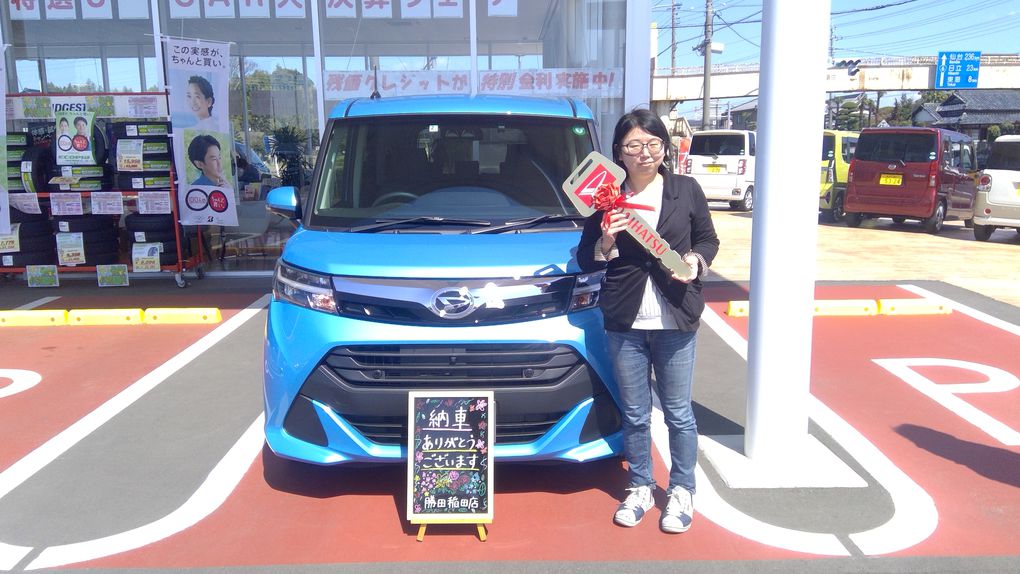 -お客様の声-初めての新車です。分からないことだらけでしたが、色々助言を頂き助かりました。ありがとうございます!この度はご納車させていただきありがとうございました😊トールが役に立ってくれたら嬉しいです!!今後も末永いお付き合いをよろしくお願い致します。担当:小川
