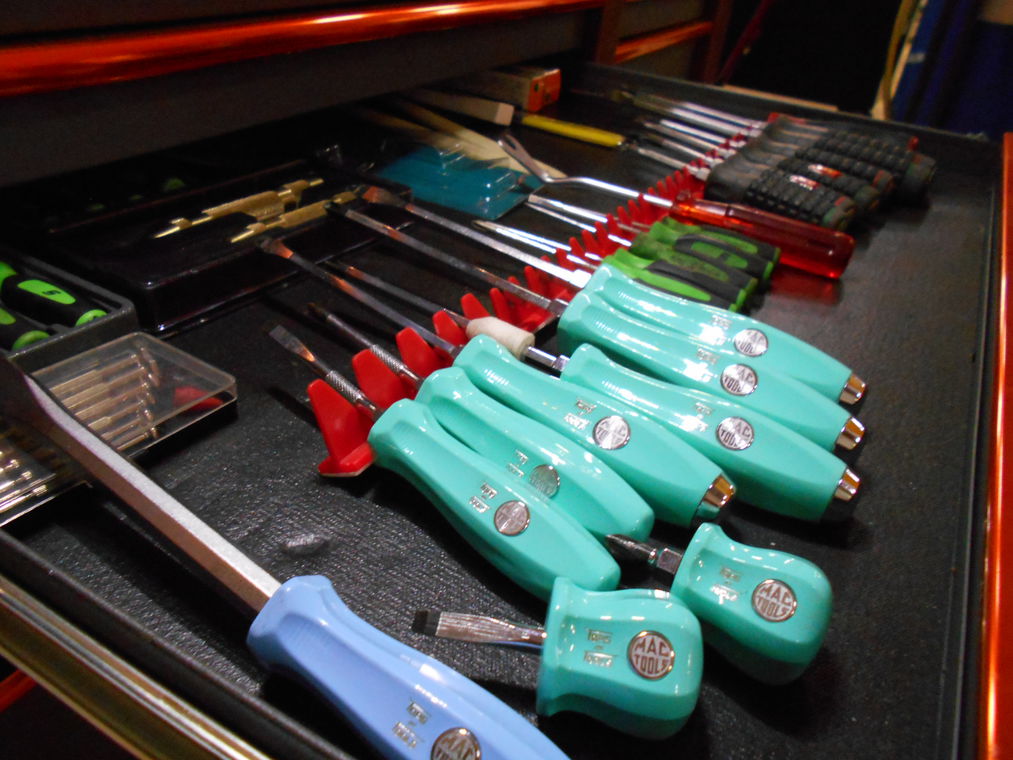 おしゃれデザインでしっかり性能を兼ね備えたドライバーなどこれらの工具は大変高価な為、ほとんどの工具に永久保証がついているそうです( ゚Д゚)