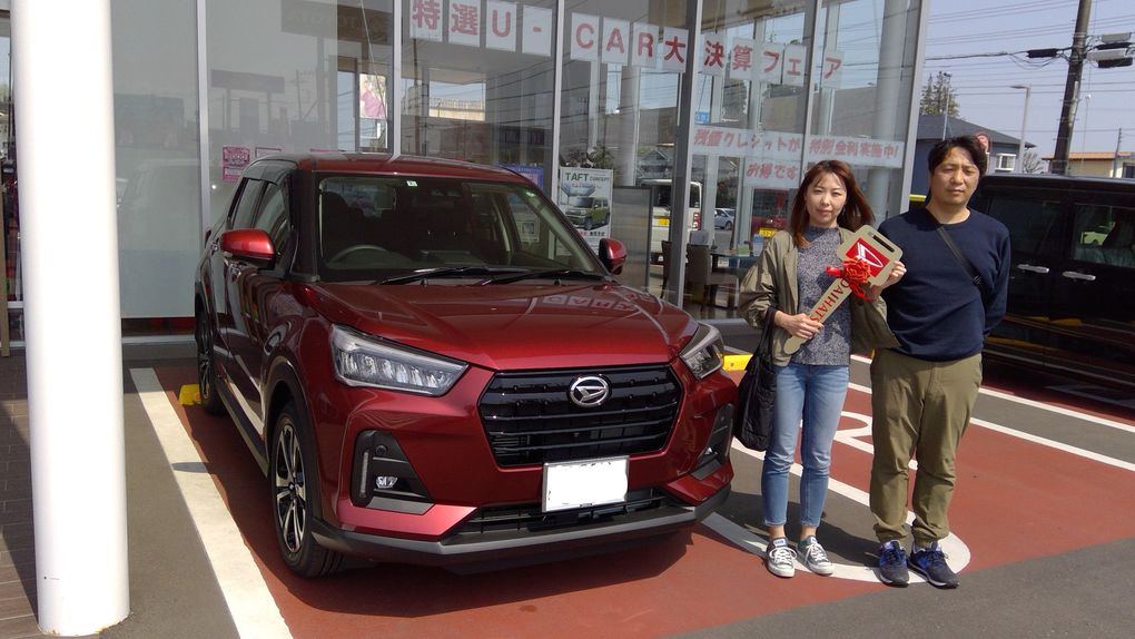 ―お客様の声―担当の山本さんにとても丁寧に接客していただきました。今後も末永くよろしくお願いします。ロッキーとってもお似合いですヾ(≧▽≦)ノ最新の機能を沢山使って、快適なカーライフをお送りください♪こちらこそ今後も末永いお付き合いをよろしくお願いいたします。担当 山本