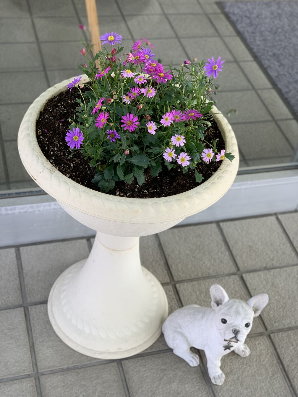 お世話になっております。日立店です。すっかり暖かくなり春らしい季節になりました。お店のある通り「あんず通り」ではあんずの花が咲きはじめました。点検の待ち時間にお散歩してみてはいかがでしょうか。店舗では、入り口のお花の植え替えをしました。今回植えたのは『姫小菊』というお花です。サンドピンク・マゼンタピンク・バイオレットの3色のミックスで可愛らしいお花です🌼ご来店の際、是非ご覧ください。
