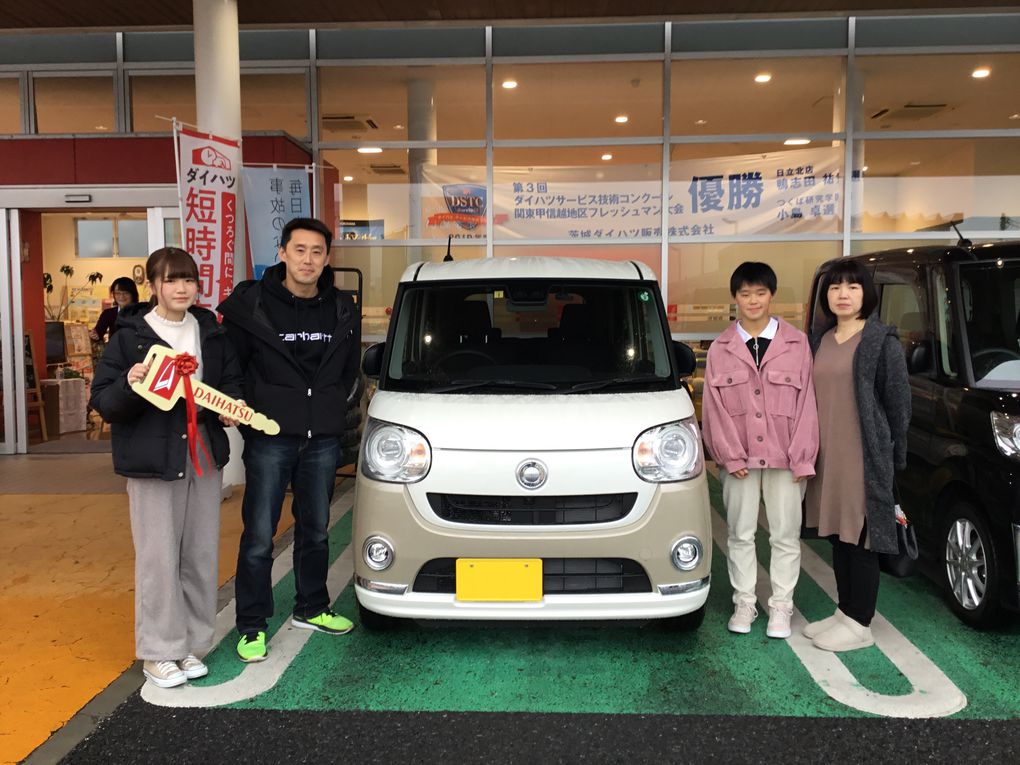 この度は、ムーヴキャンバスのご納車誠にありがとうございました。ご家族みなさんとの思い出づくりに、キャンバスが役立つことを願っています!今後とも末永いお付き合いをよろしくお願いいたします。担当:田中
