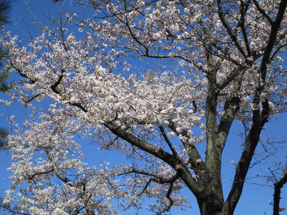 3/25(水)13:00 晴れ さくら越しに見た店舗の写真