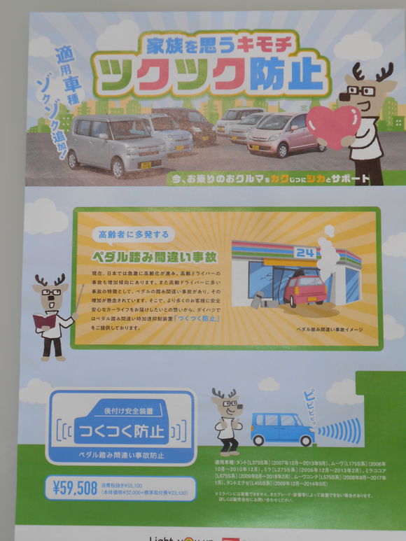 後付けの誤発進抑制装置『ツクツクボウシ』も付けられます。対象車種はスタッフまでご確認ください。補助金も対象になります。