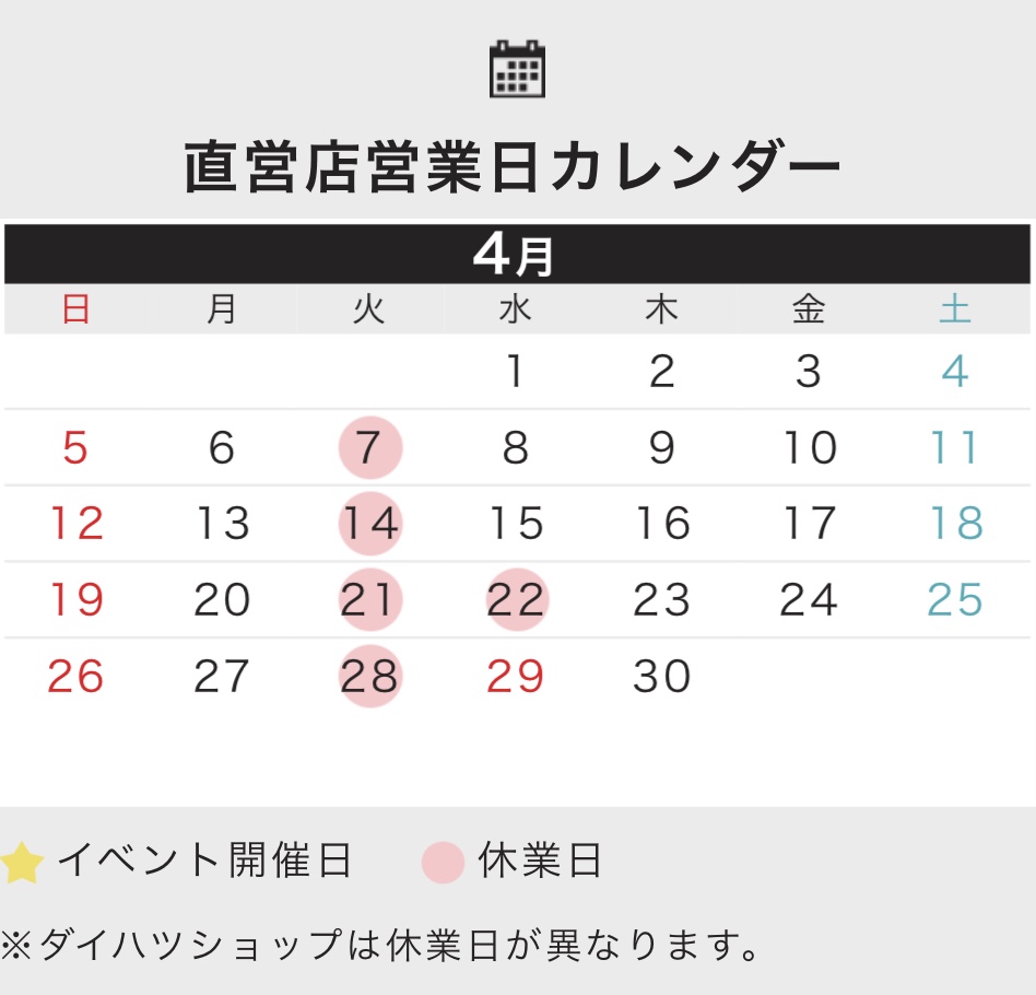 茨城ダイハツホームページのトップ画面でも営業カレンダーがご覧いただけるので、