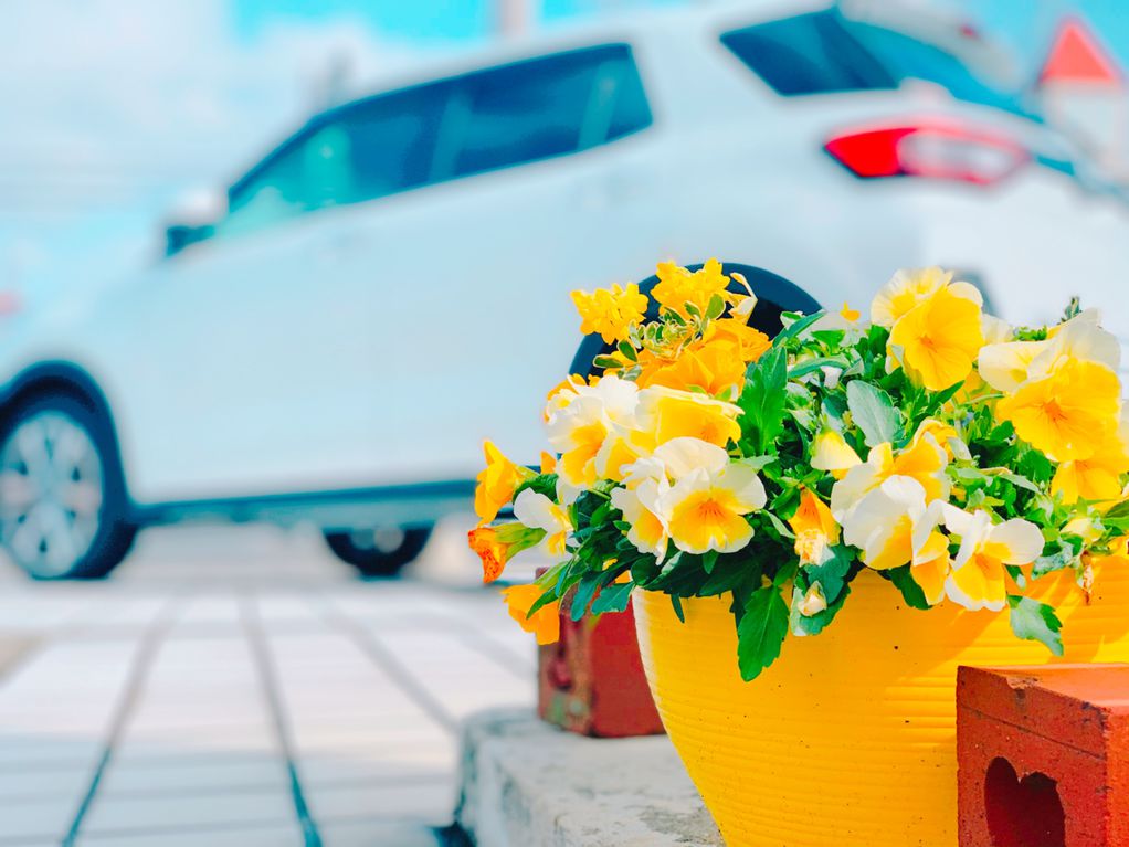 さて、当店の入り口に目を向けると、可愛らしいお花が咲いていました!