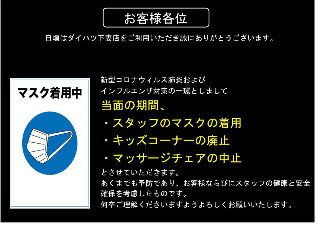 こんにちは(*^^*)下妻店です🌷新型コロナウィルス感染予防のため、当店では、お客様が少しでも安心してご来店いただくために、精一杯取り組んでおります。よろしくお願いいたします。また、4月1日より営業時間が変更になりました。<営業時間>9:30~18:15<サービス受付時間>9:30~17:30赤字のところが変更点です。ご迷惑おかけいたしますがよろしくお願いいたします。少しでもご不安点、疑問点ございましたらお気軽にご連絡くださいね🚙