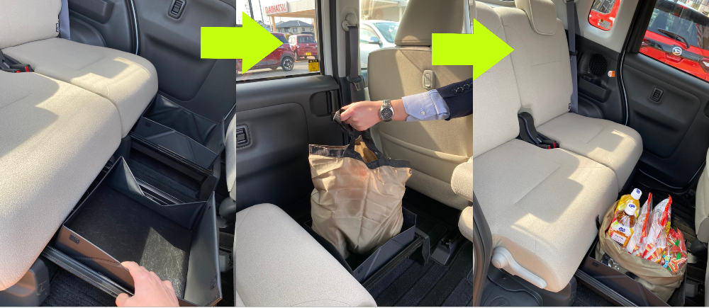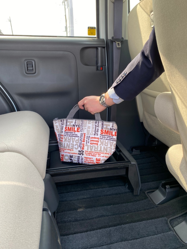 リアシートにある「おきらくBOX」はキャンバスだけ!2席分あり便利!