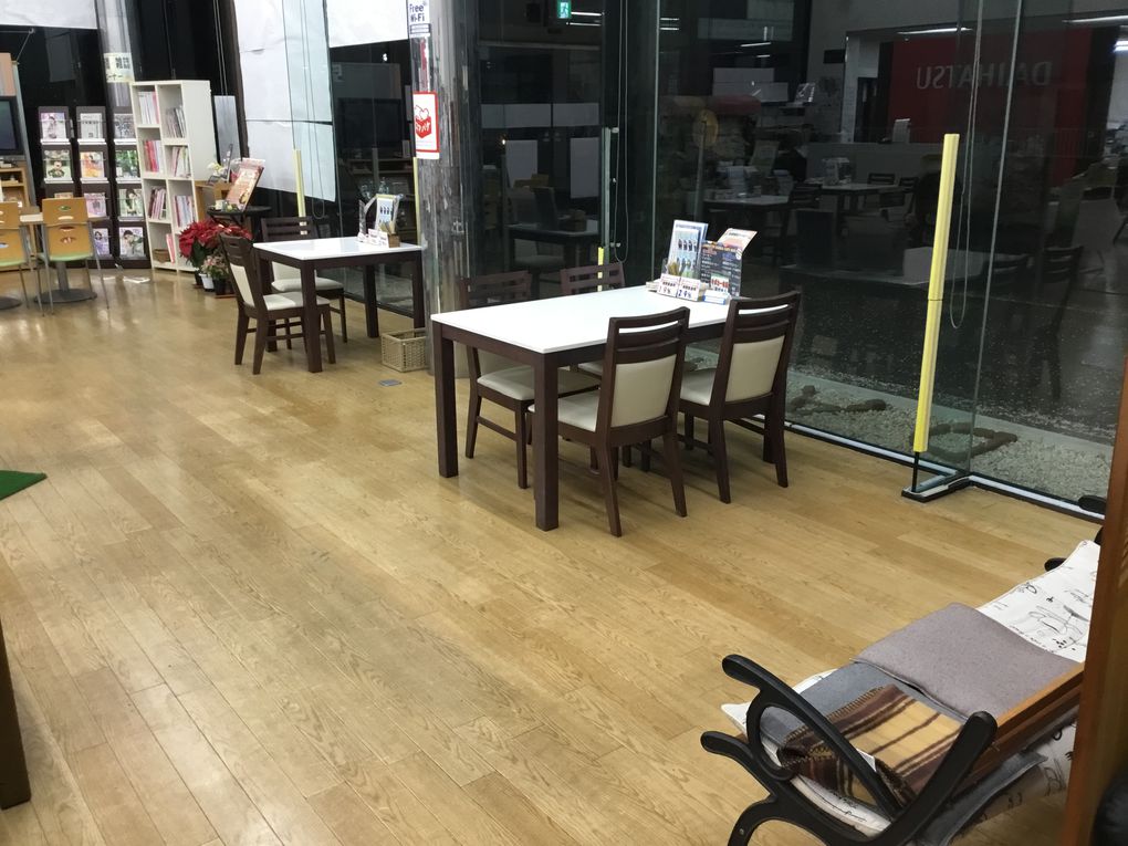キッズコーナーを撤去し。各テーブルの間隔をあけています。