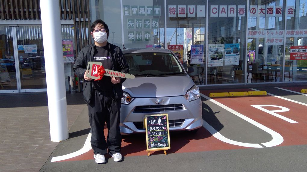 お客様の声「これからもよろしくお願いします!」この度はご納車させていただきありがとうございました。スマートアシストⅢがついて安心安全な車です。たくさん乗ってくださいね!こちらこそ末永いお付き合いをよろしくお願い致します。担当 住谷