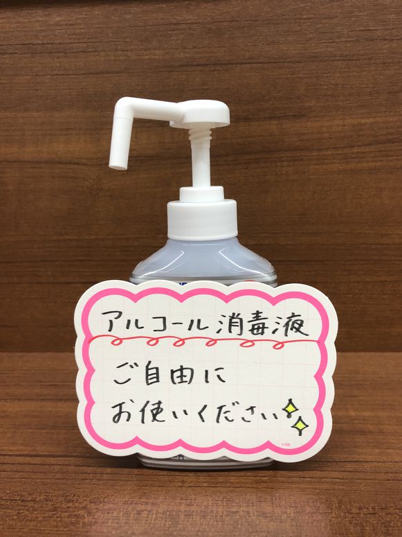 アルコール消毒液をショールーム内数か所に設置しております。 ご自由にお使いください。