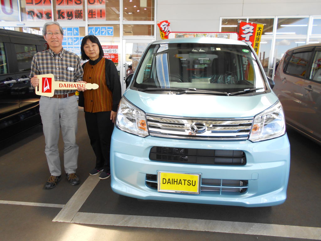 ~お客様の声~次世代スマートアシスト機能が付いた車で良かった。ワンダフルパスポート60にも加入したので5年間安心です。担当:石塚ご納車させていただき、誠にありがとうございます。これからブルーのムーヴで楽しい思い出を作って下さい。これからも末永いお付き合いを宜しくお願い致します。