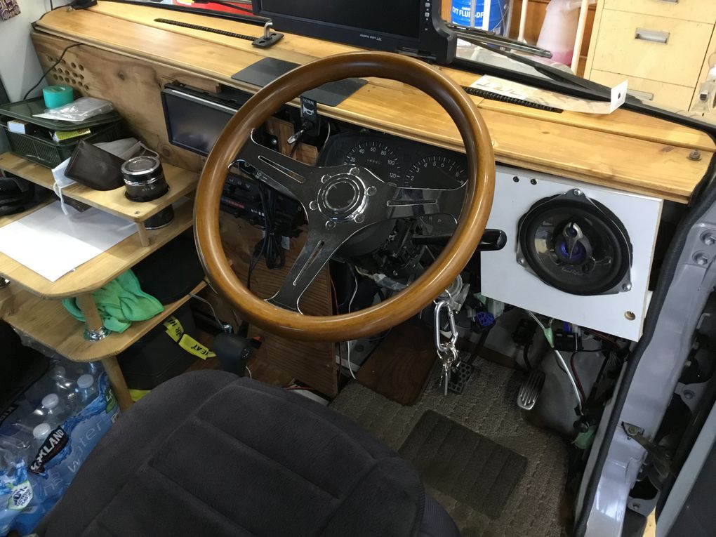 こだわりのつまった内装✨パネル類は全部DIY🔨🔧!!進化の途中らしいです…!剥き出しのスピーカーは味がでてますね~(^O^)