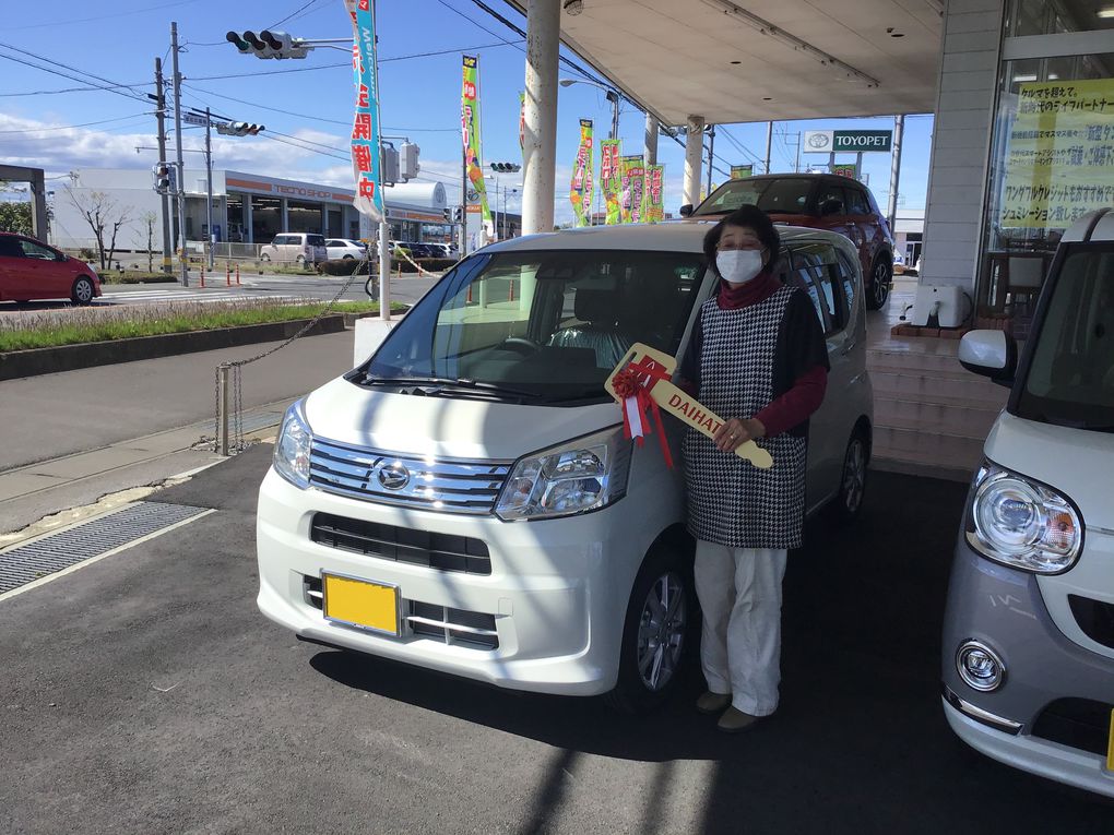 この度はご納車おめでとうございます。 ムーヴで素敵な思い出を作ってください。今後とも宜しくお願いします。担当 曽根