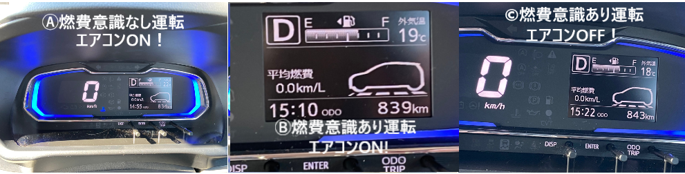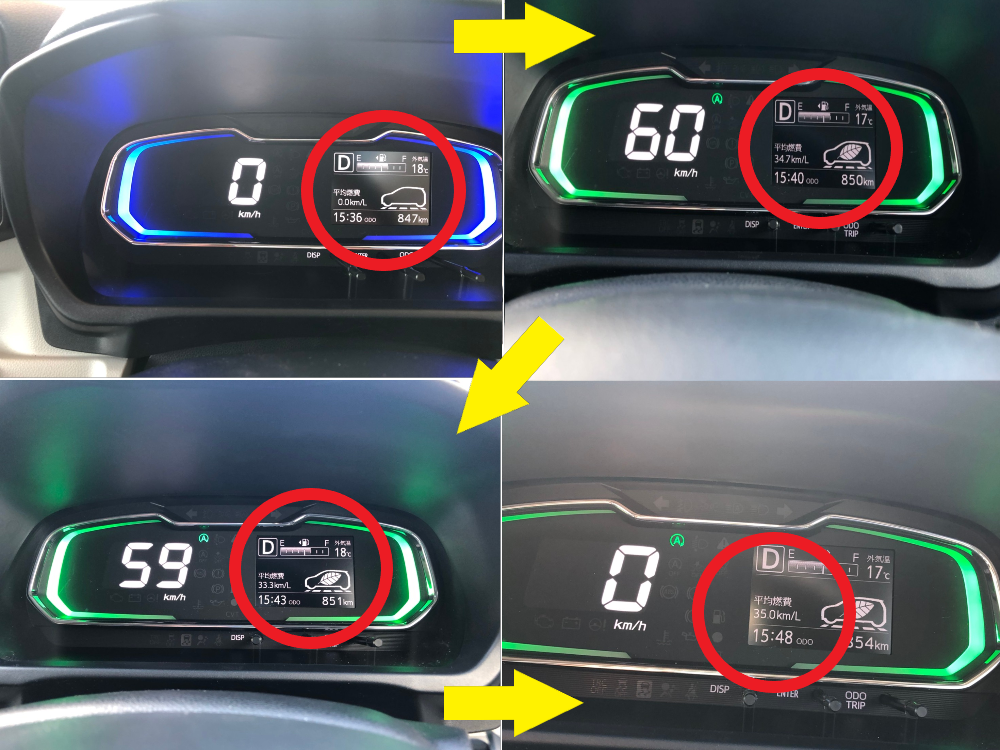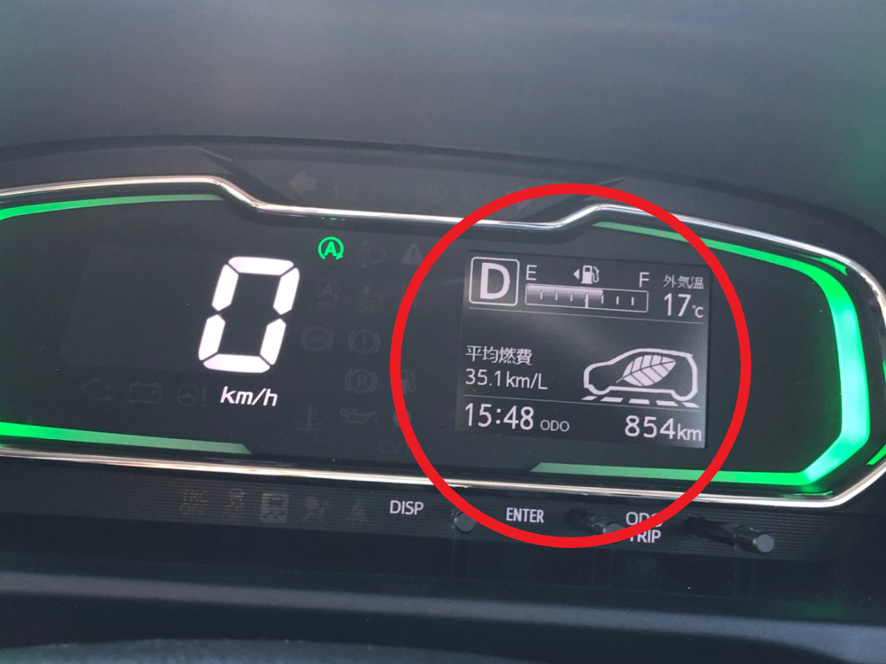 まずは走る前に燃費計をリセット!(長押しで二秒だよ♪)