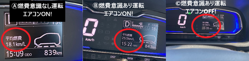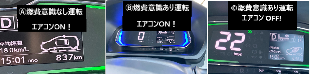 ~中間報告~Ⓐ18.0Km/LⒷ27.8Km/L©29.6Km/L