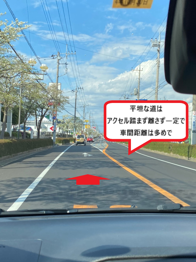 むやみにアクセルON/OFFしないこと~車間距離多めにとることで走りに余裕が出ます♪