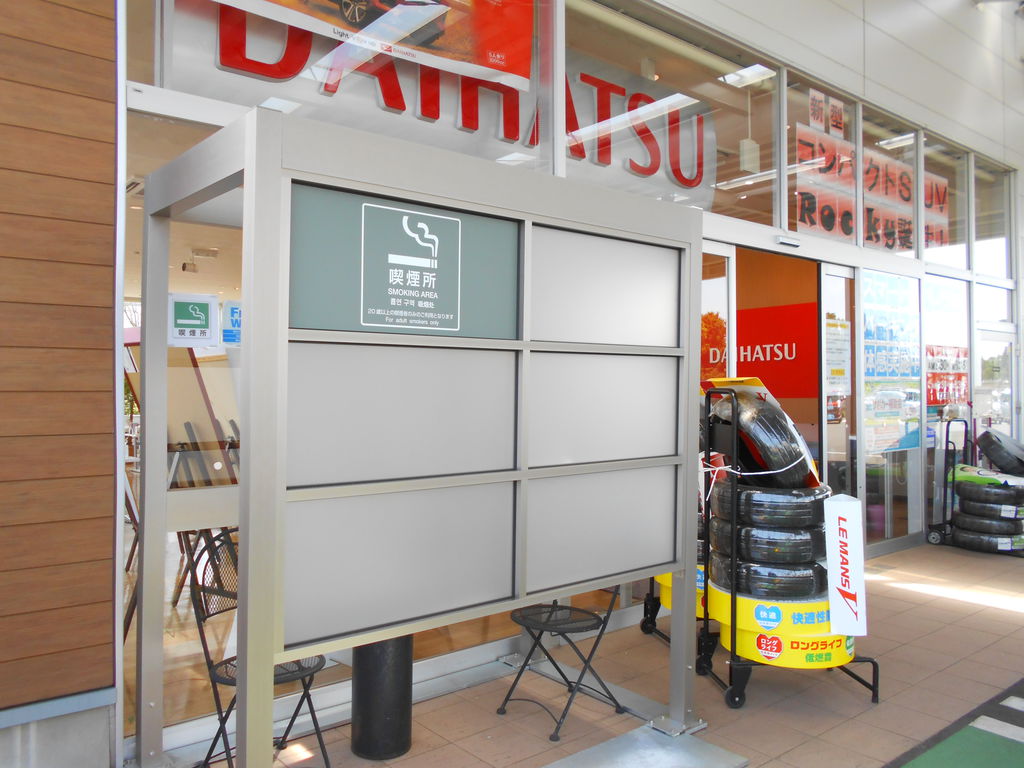 こんにちは!つくばささぎ店です。気温が高くなってきましたね☀皆様もマスク熱中症にご注意ください!!!当店には、お店を出て右手に喫煙所がございます。この度GW前に喫煙所をリニューアルいたしました!椅子や灰皿は依然と同様なんですが、新たに壁を設置いたしました!!分煙効果を高め、煙が外へ逃げづらいようにしております。また、店舗では引き続き、換気やアルコール除菌も行います。少しでも皆様が快適におくつろぎできますように努めてまいります。