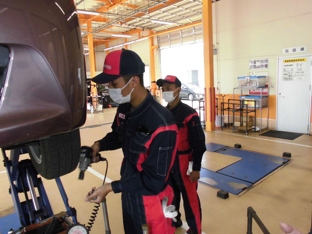 こんにちは。いつも土浦店をご利用いただきありがとうございます。5月になり、土浦店ではスタッフが変わり、加わりました!今回は加わったスタッフの紹介を!すでに、点検等で入庫いただいた際に気づいた方もいらっしゃったかもしれません。アグス君とアルフィアン君です。実は、インドネシアからの技能実習生なんです!まだまだ未熟ではありますが、先輩と一緒に頑張って整備してます!温かく見守ってください!