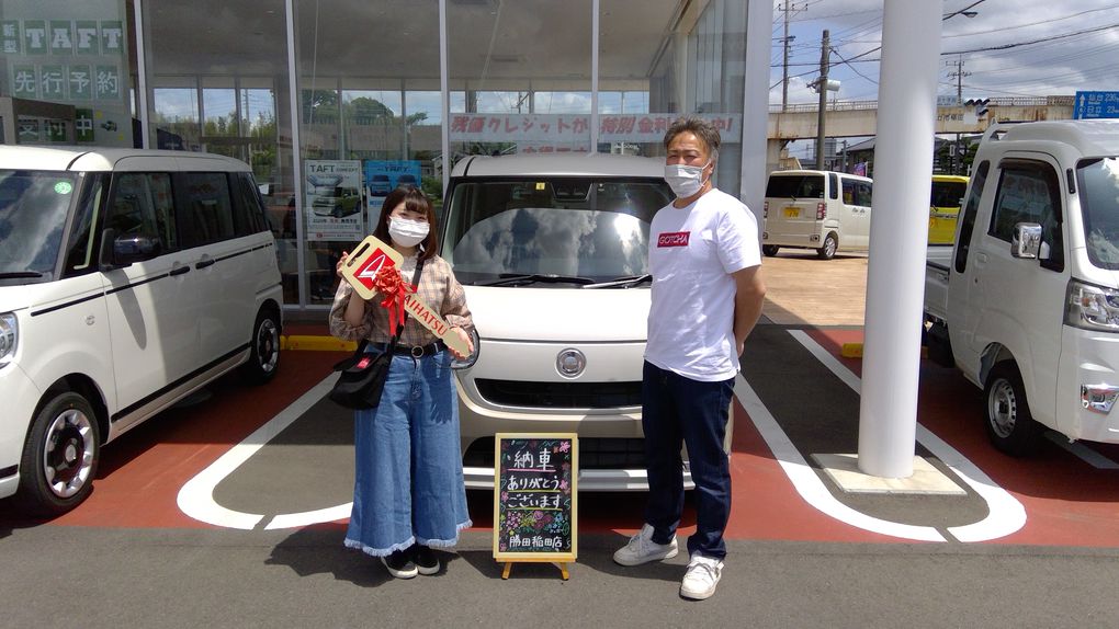 -お客様の声-自分で初めて買った車、大切に乗ります。ご納車おめでとうございます。初めての車にダイハツを選んでいただきありがとうございました!これからも末永いお付き合いをよろしくお願いします。担当 村松