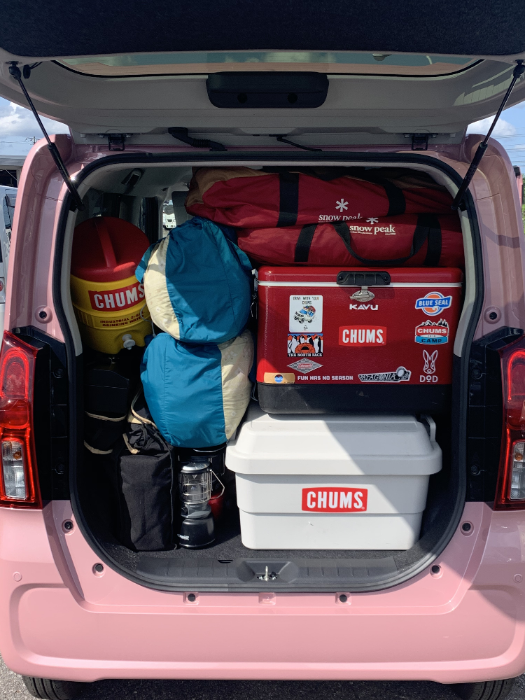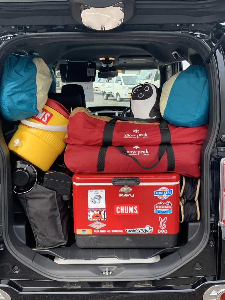 軽レジャークルマ~WAKE~さすがWAKE!軽なのにこの積載量!後方視界良好!