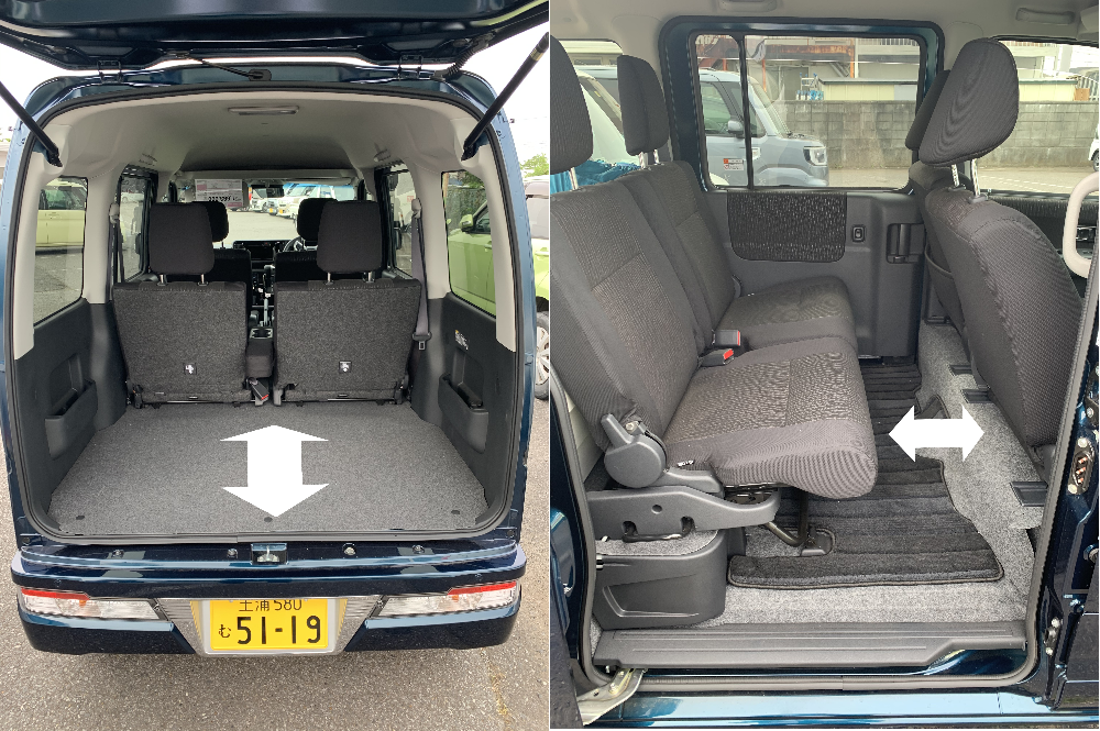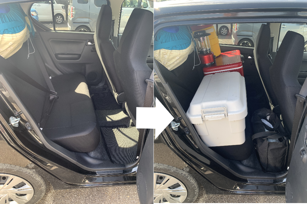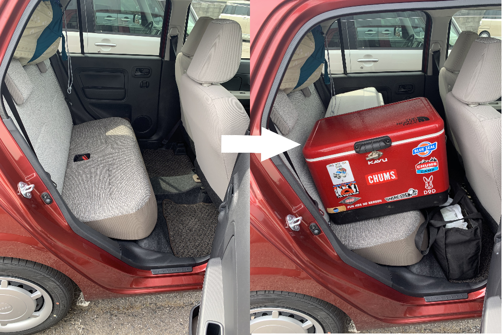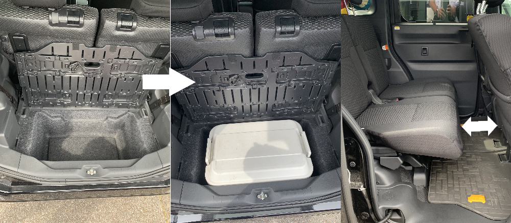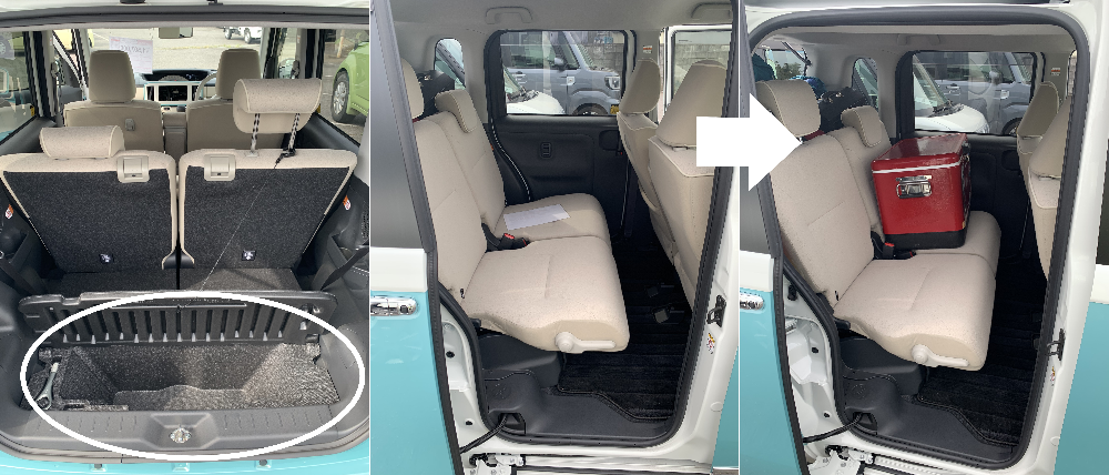 床下収納には50LのBOX積載!後席にも座れる余裕ありますね!4人乗車OK