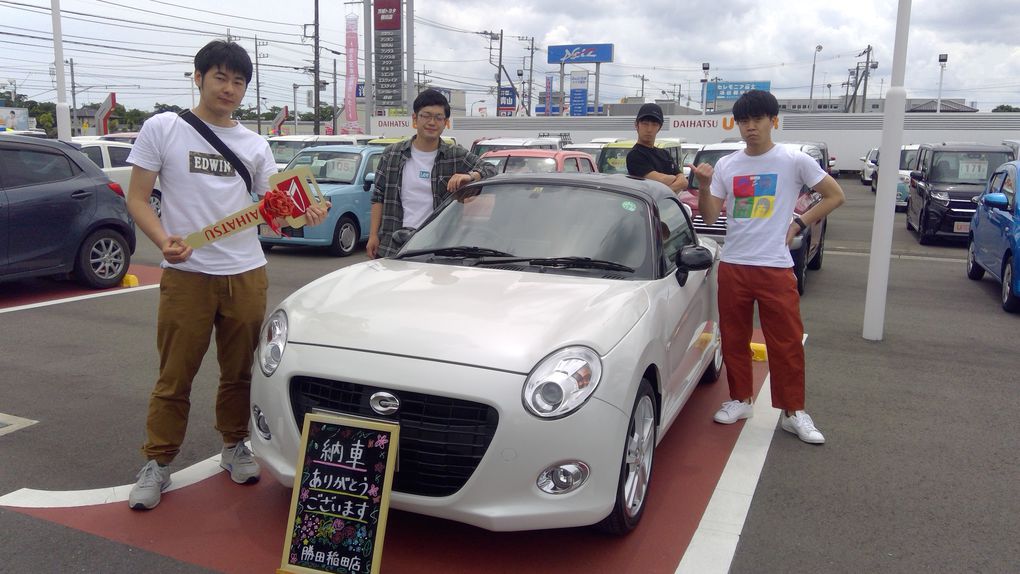 お客様の声「住谷さんに大変お世話になりました。これから大切に楽しく乗りたいと思います。」この度はご納車させていただきありがとうございました。コペンは乗って楽しい車です。たくさんドライブしてくださいね。今後とも末永いお付き合いをよろしくお願い致します。担当 住谷