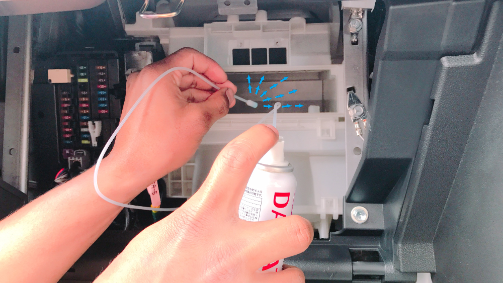 エアコンフィルターがあった位置から噴霧して洗浄~除菌~♪