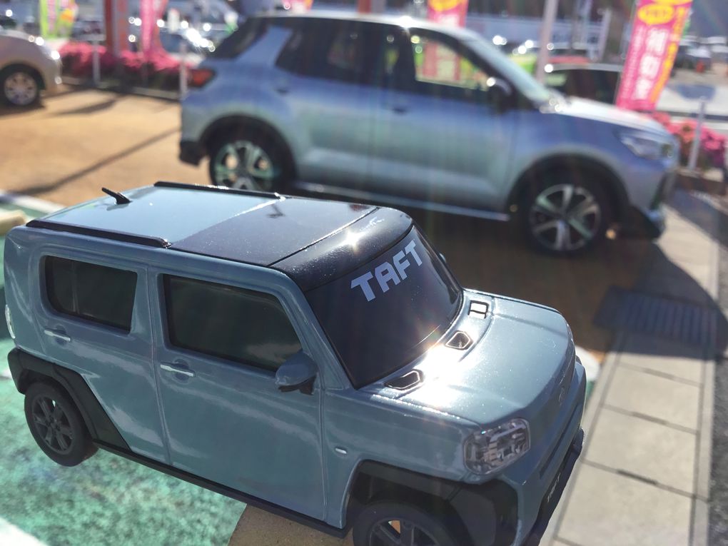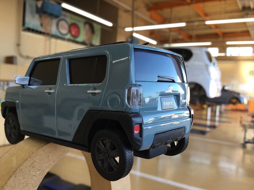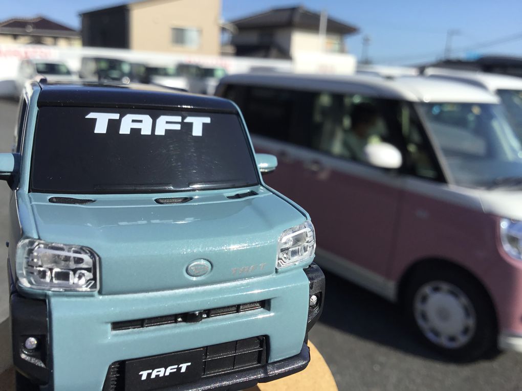 6/10に待望の新型【TAFT】がデビューしました!!!!!デビュー前からたくさんの先行予約をいただいていた、注目の新型車です!TAFTがどんな車かは、後日ホームページで詳しくご紹介しますのでお楽しみに…♡ということで、今回はこれから届くTAFTの試乗車を思い浮かべながら、ミニカーで妄想に浸ってみました(笑)TAFTの試乗車、はやく来ないかな(^^♪※このブログはTAFTが届いていないときに書かれたものです。6/11に届きました!!!