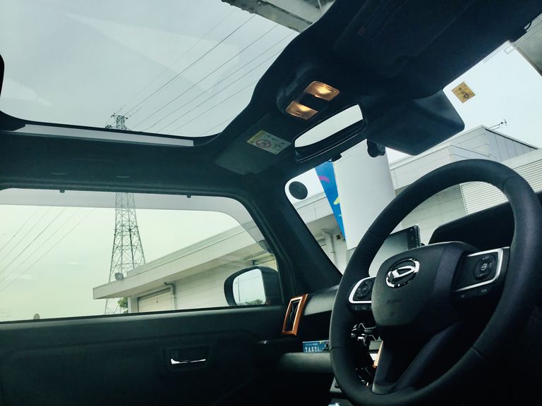 新型車タフトの内側を、少しご紹介します!疲れにくいシートの作りになっているので、長時間のドライブでも快適です✨