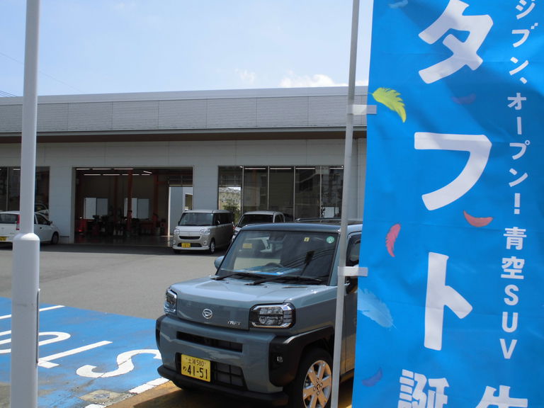 こんにちは。いつも土浦店をご利用いただきありがとうございます。先日、新型車が発表されました!!その名もTAFT!!試乗車も入り、この前の土日からたくさんのお客様に見ていただきました!!ご来店ありがとうございました!気になっている方、乗ってみたい方などなどぜひ1度ご来店ください!現在は、Gグレードが配備されています。今月中にはもう1台ターボ付きの車が配備される予定です!ご来店お待ちしております。