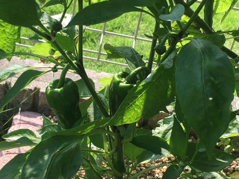 左のピーマンくんはミニトマトのアイコちゃんに押され気味ですが