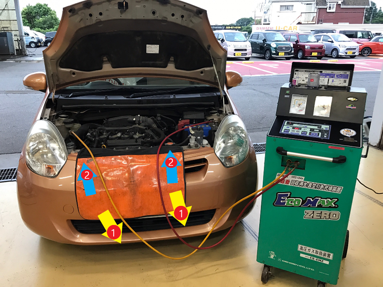 こちらのマシーンでさっそくエアコンガスリフレッシュします!